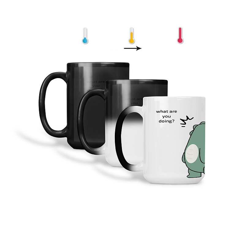 با ریختن مایعات داغ (آب جوش، چای، قهوه): ماگ بهتدریج روشن شده و طرح چاپ شده روی آن نمایان میشود.