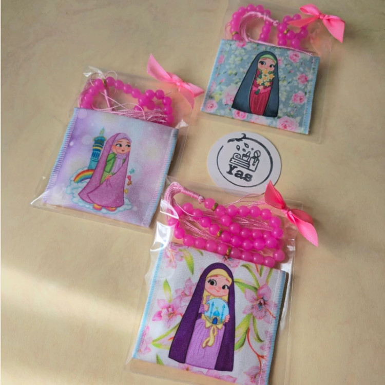 طرح جانماز دخترانه و رندوم-هدیه شامل جانماز و تسبیح 33 دانه پلاستیکی همراه با بسته بندی پلاستیکی