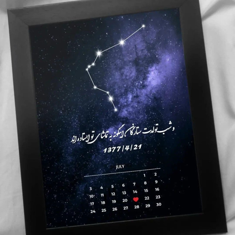 ⭐اجرای طرح دلخواه شما شامل : ✨ بارکد و موزیک ✨ تاریخ و صدای شما ✨ تصاویر شما ، عکس ماه ، چشم و .. با متن دلخواه ✨انواع چیدمان عکس (شامل عدد، اسم، قلب، ماه و... ) ⭐ ابعاد استاندارد قابها : ✨ ابعاد 40*30 ابعاد 21*16 ✔️ شخصی سازی طرح بر اساس سلیقه شما (هر آنچه مورد نظر شما باشه ) ✔️ چاپ تخصصی تصاویر با دستگاه های بروز با کیفیت بالا ✔️