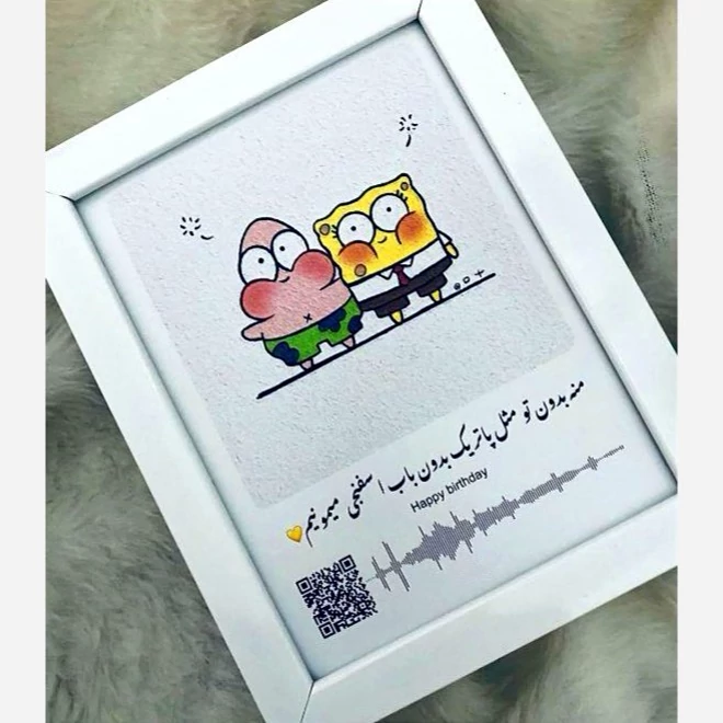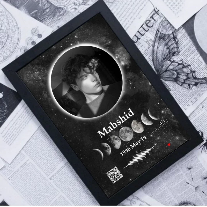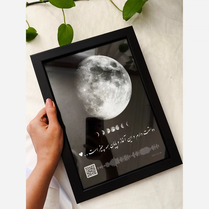 ⭐اجرای طرح دلخواه شما شامل : ✨ بارکد و موزیک ✨ تاریخ و صدای شما ✨ تصاویر شما ، عکس ماه ، چشم و .. با متن دلخواه ✨انواع چیدمان عکس (شامل عدد، اسم، قلب، ماه و... ) ⭐ ابعاد استاندارد قابها : ✨ ابعاد 40*30 ابعاد 21*16 ✔️ شخصی سازی طرح بر اساس سلیقه شما (هر آنچه مورد نظر شما باشه ) ✔️ چاپ تخصصی تصاویر با دستگاه های بروز با کیفیت بالا ✔️