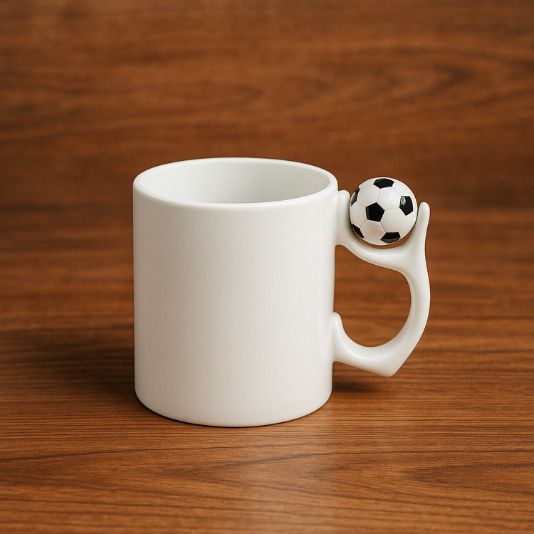 طراحی منحصر به فرد: دسته به شکل توپ فوتبال باعث جلب توجه میشود و ظاهری متفاوت از ماگهای معمولی دارد.