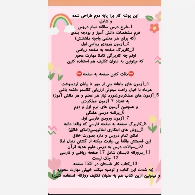 پوشه کار پایه دوم | کاملترین بسته آموزشی معلم و دانشآموز