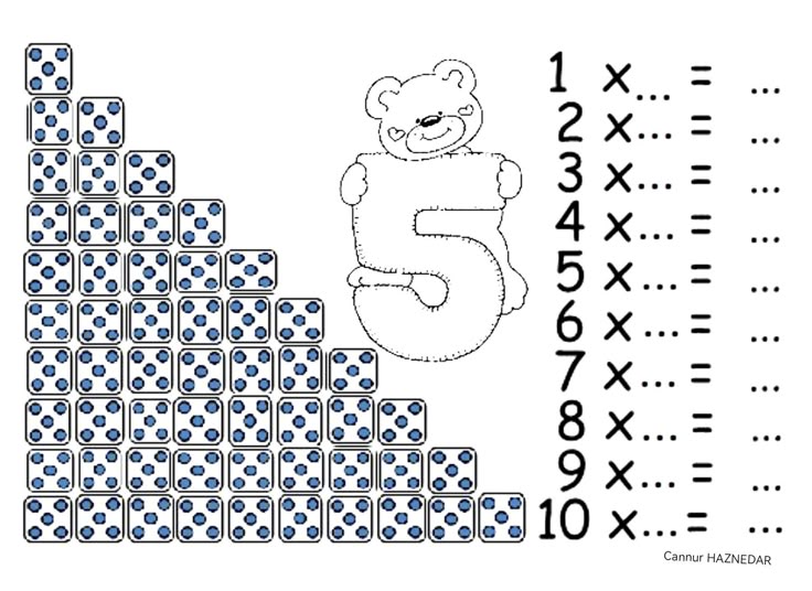 پوستر آموزشی جدول ضرب عدد ۵ – طرح خرس مهربان با طراحی ساده، رنگهای شاد و چیدمان تصویری مکعبها (تاسهای شمارشی)، به کودکان کمک میکند مفهوم ضرب را بهصورت دیداری و قابل درک یاد بگیرند.