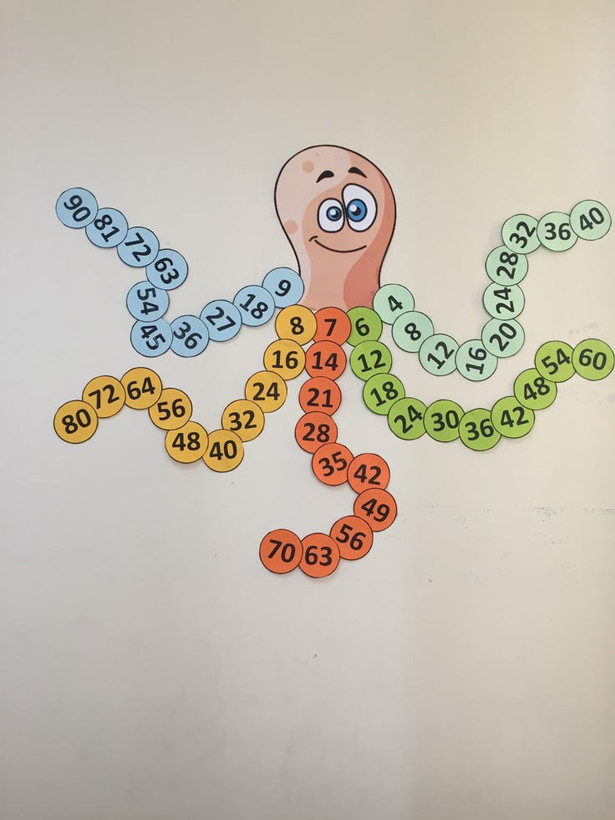 هر بازوی هشتپا با یک رنگ مخصوص نشاندهنده مضارب یک عدد (۲، ۴، ۵، ۷، ۸…) است